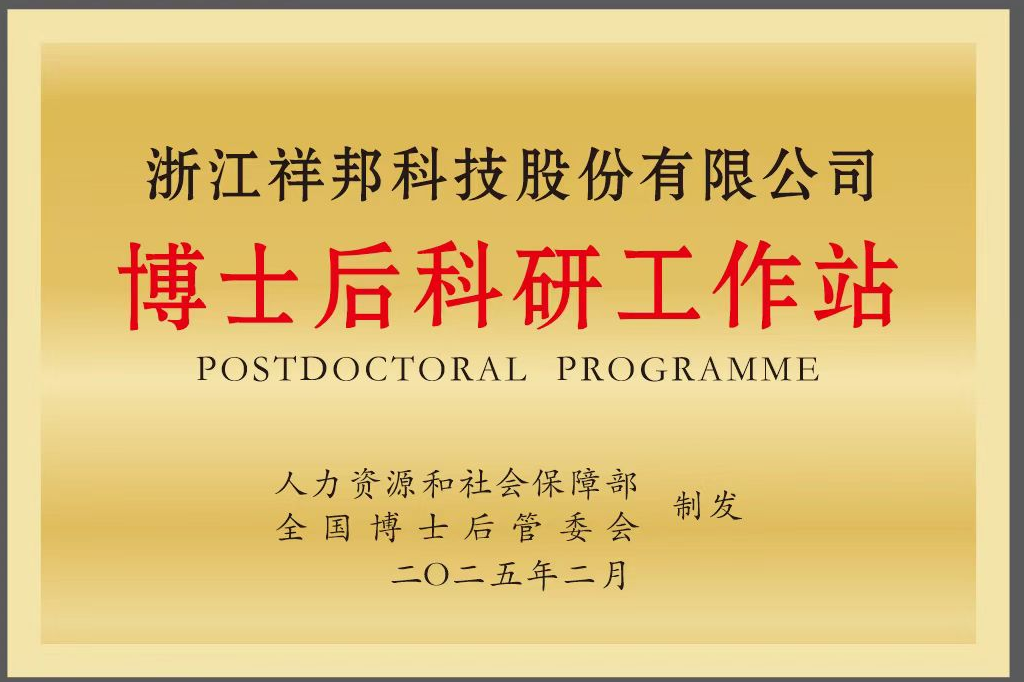 2025年2月經(jīng)國家人社部、全國博士后管理委員會(huì)聯(lián)合批準(zhǔn),祥邦科技正式設(shè)立國家級博士后科研工作站。這一里程碑距2023年3月建成浙…